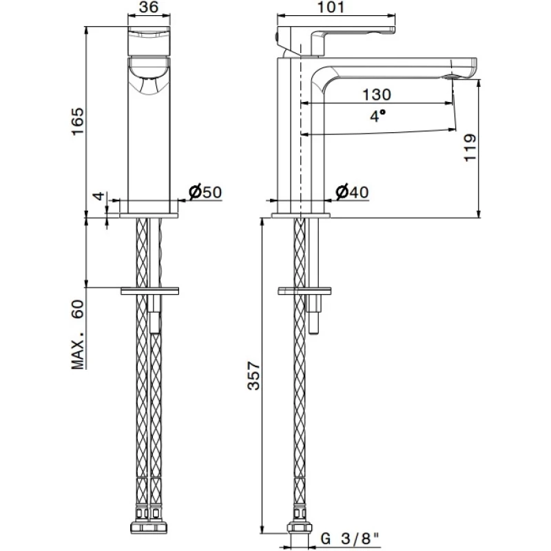 Смеситель на борт ванны Webert Alexandra AL730101015