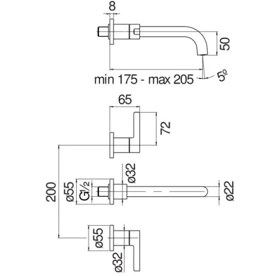 Смеситель для раковины Nobili Lira LR116298/1T1BM встраиваемый, без донного клапана, черный матовый