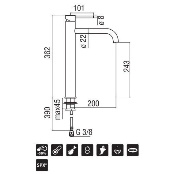 Смеситель для раковины Nobili Velis VE125148/2FLP с донным клапаном, черный глянец