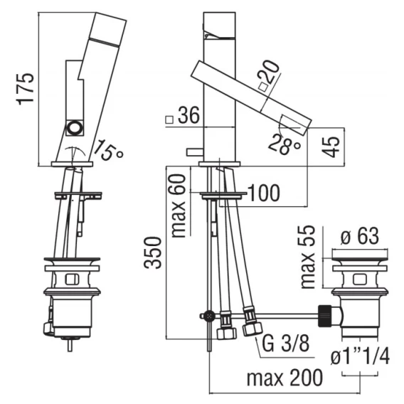 Крепление, Аэратор, Гибкая подводка, Донный клапан