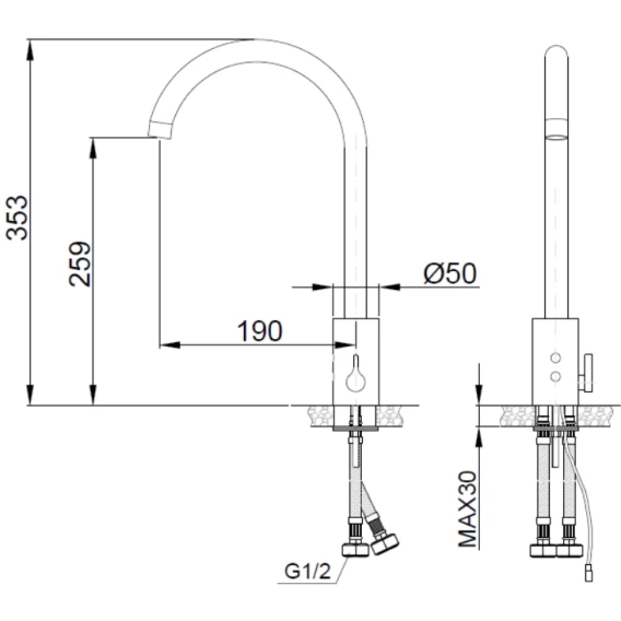 • Размеры гибкой подводки: G 1/2'.