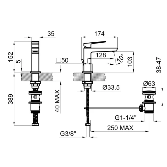 Крепление, Аэратор, Гибкая подводка, Донный клапан