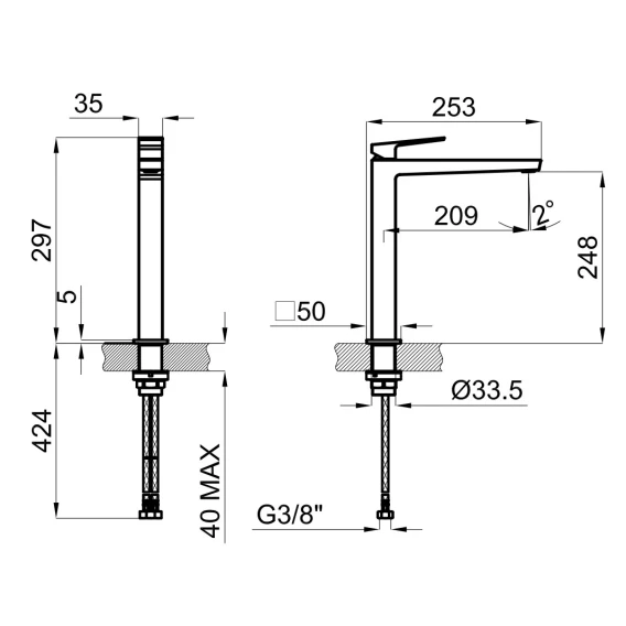 Высота излива 24.8 см