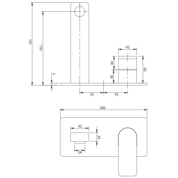 Смеситель для раковины Omnires Baretti BA7815BL встраиваемый, без донного клапана, черный матовый
