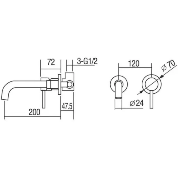 Смеситель для раковины Orange Karl M05-722cr встраиваемый, без донного клапана, хром