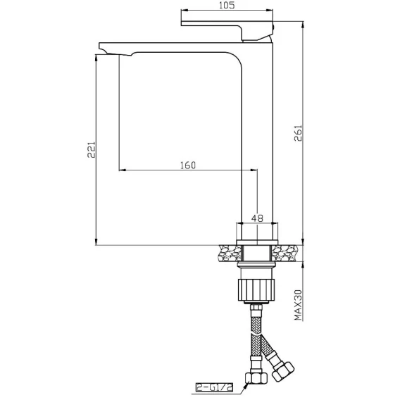 Смеситель для раковины Orange Lutz M04-121b без донного клапана, черный матовый
