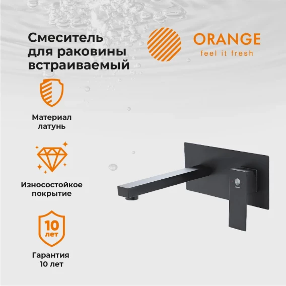 Смеситель для раковины Orange Lutz M04-722b встраиваемый, без донного клапана, черный матовый