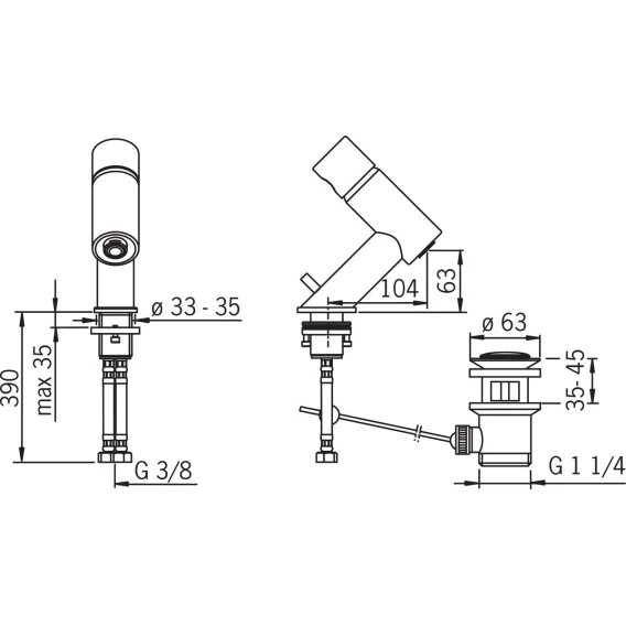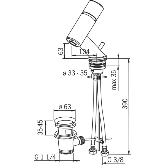 Смеситель для умывальника со стационарным изливом,с аэратором и рычажным донным клапаном.