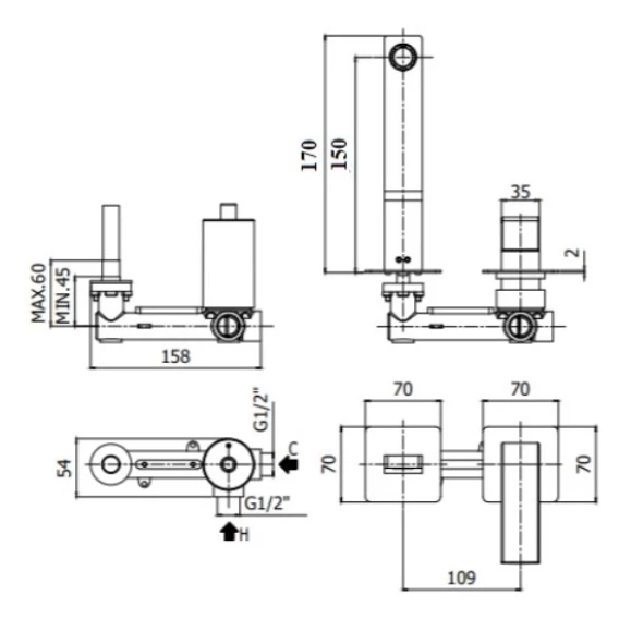 Смеситель для раковины Paffoni Elle EL104NO70 встраиваемый, без донного клапана, черный матовый