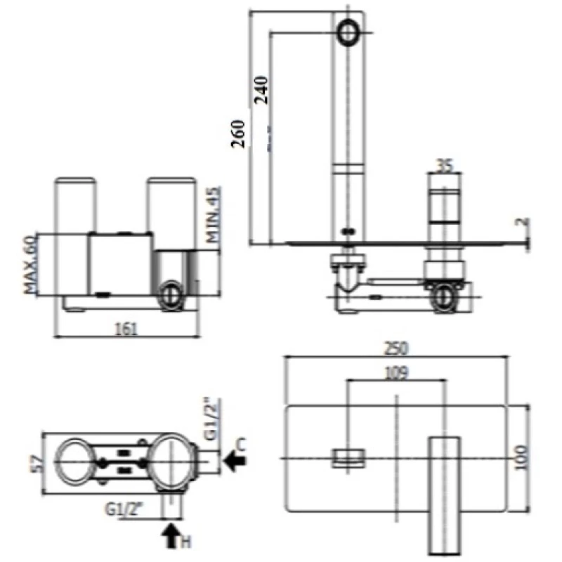 Смеситель для раковины с донным клапаном Paini Dax-R 84CR250R