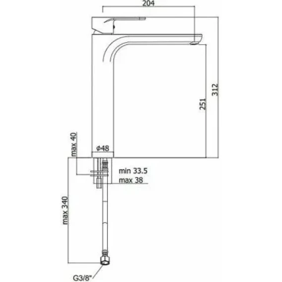 Высота излива 25.1 см