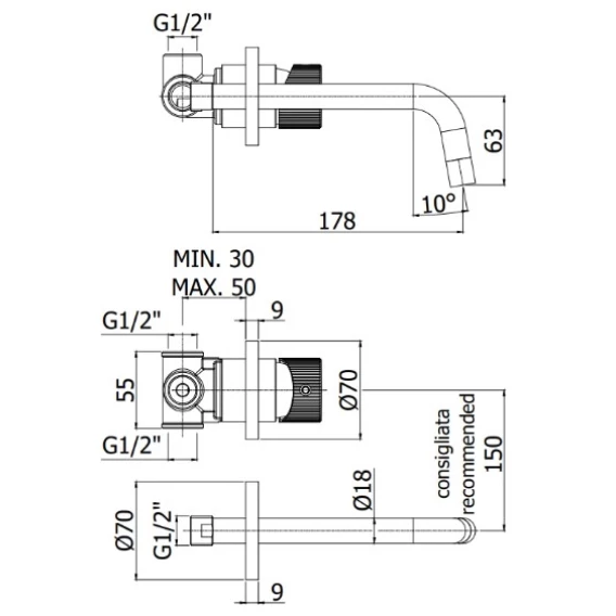 Донный клапан для раковины Wonzon & Woghand WW-88SS03-BG с переливом, золотой матовый