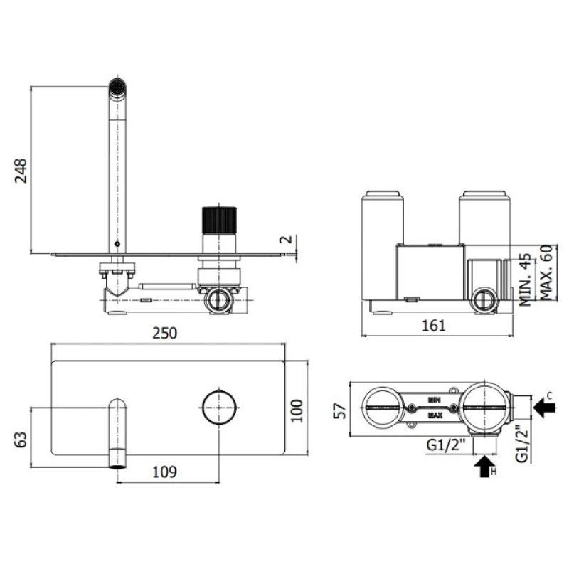 Душевой комплект 555x230 мм Abber Weiss Insel AF8052