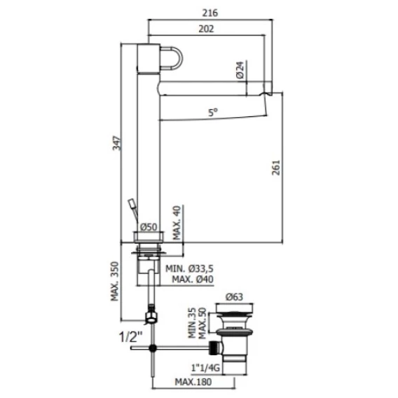 Высота излива 26.1 см