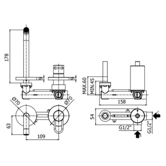 Длина излива 17.8 см