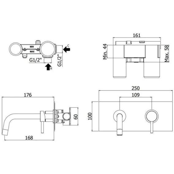 Смеситель для раковины без донного клапана Remer Vanity V12BG