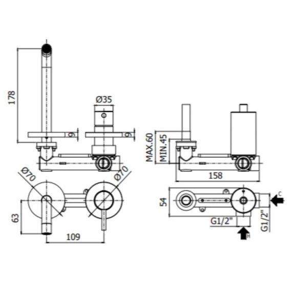 Смеситель для кухни Raffine F303T-3 с гибким изливом, оружейная сталь