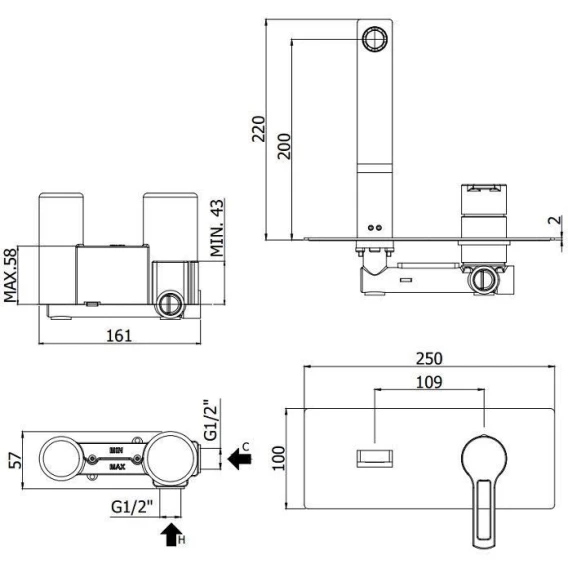 Излив для ванны Plumberia Selection IXO SPT0258GR 252 мм, графит