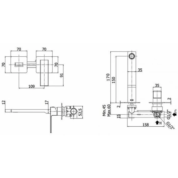 Смеситель для раковины Paffoni Rock RO104CR70 встраиваемый, без донного клапана, хром