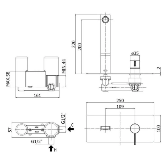 Смеситель для раковины Paffoni Rock RO105CR встраиваемый, без донного клапана, хром
