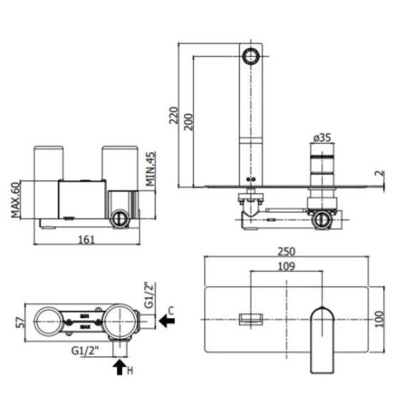 Длина излива 20 см