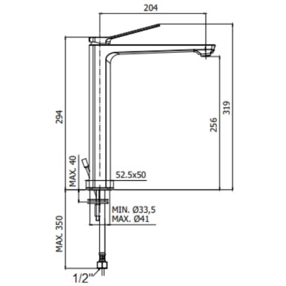 Высота излива 25.6 см