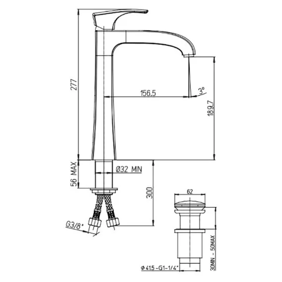 Крепление, Аэратор, Гибкая подводка, Донный клапан
