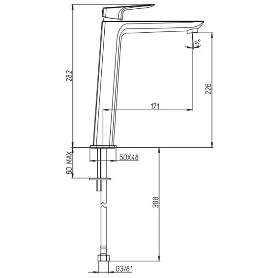 Смеситель для раковины Paini Nove 09CR205LL без донного клапана, хром