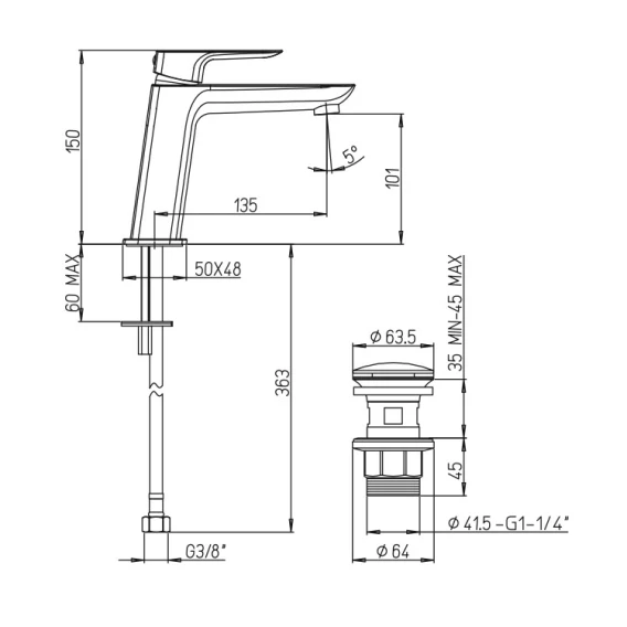 Крепление, Аэратор, Гибкая подводка, Донный клапан