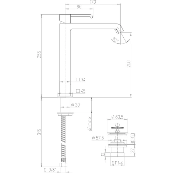 Крепление, Аэратор, Гибкая подводка, Донный клапан