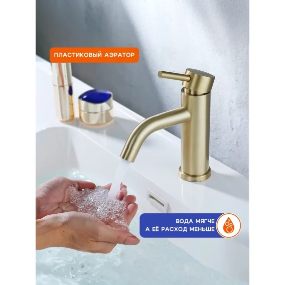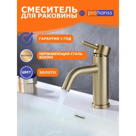 Смеситель для раковины Prohanss P31.10.03 золотой матовый