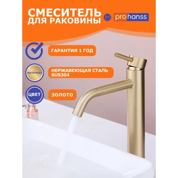 Смеситель для раковины Prohanss P31.15.03 золотой матовый
