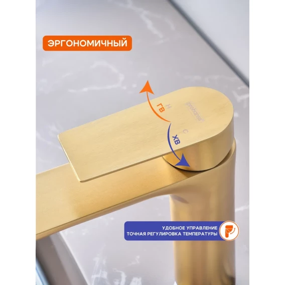 Смеситель для раковины Prohanss P35.10.03 золотой матовый