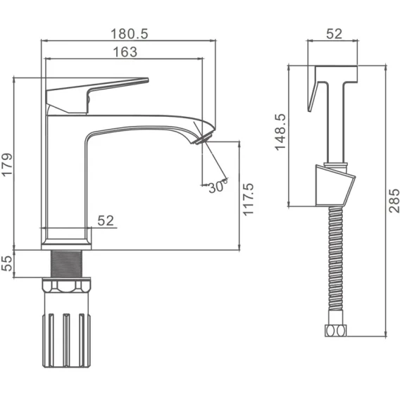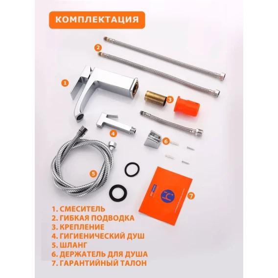 Крепление, Аэратор, Гибкая подводка, Душевой шланг, Душевая лейка, Держатель для душевой лейки