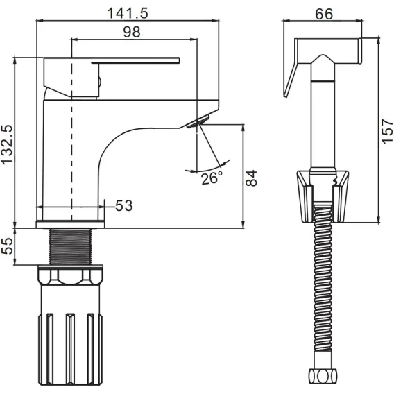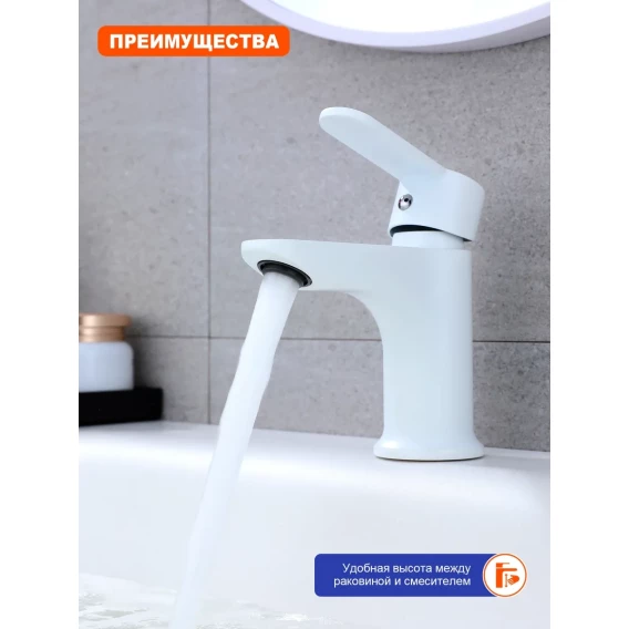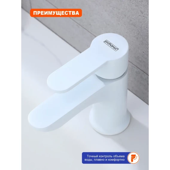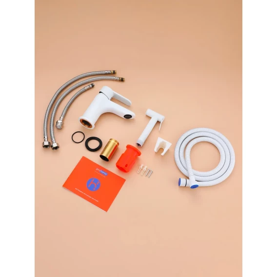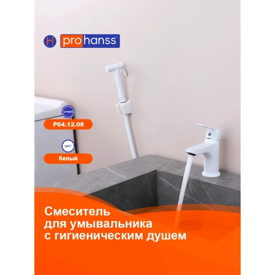 Смеситель для раковины Prohanss P64.12.08 с гигиеническим душем, белый