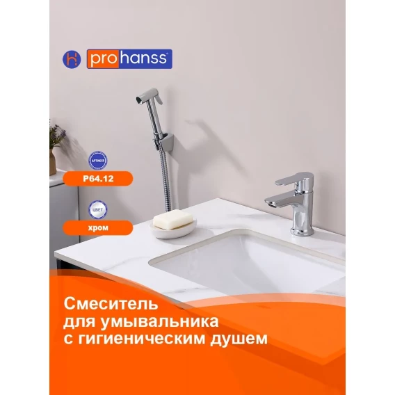 Смеситель для раковины Prohanss P64.12 с гигиеническим душем, хром