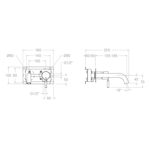 Смеситель для раковины Ramon Soler Atica 752102 встраиваемый, без донного клапана, хром