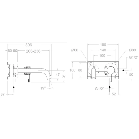 Смеситель для раковины Ramon Soler Odisea Joya 592103CUC встраиваемый, без донного клапана, медь
