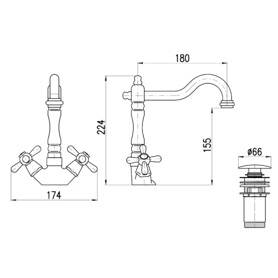 Крепление, Аэратор, Гибкая подводка, Донный клапан