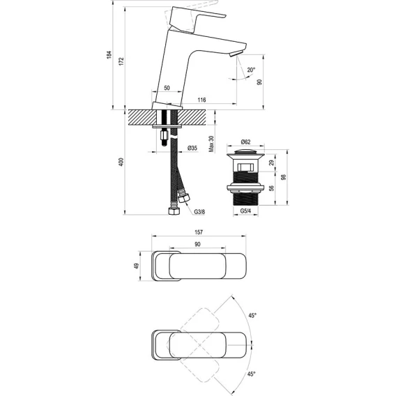 Крепление, Аэратор, Гибкая подводка, Донный клапан