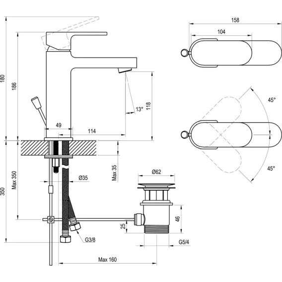 Крепление, Аэратор, Гибкая подводка, Донный клапан