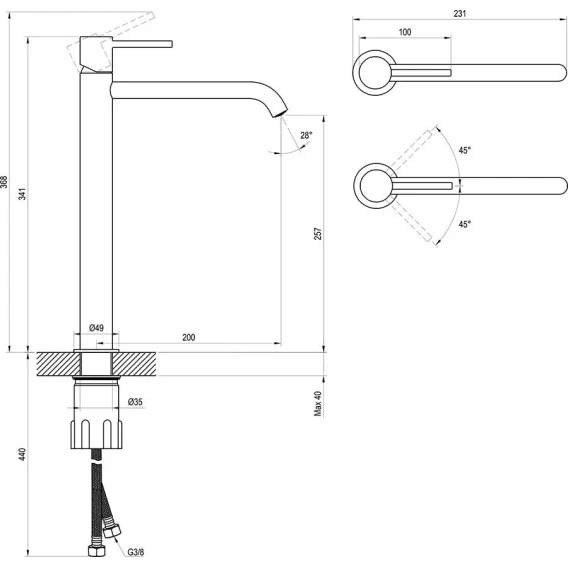 Длина излива 20 см