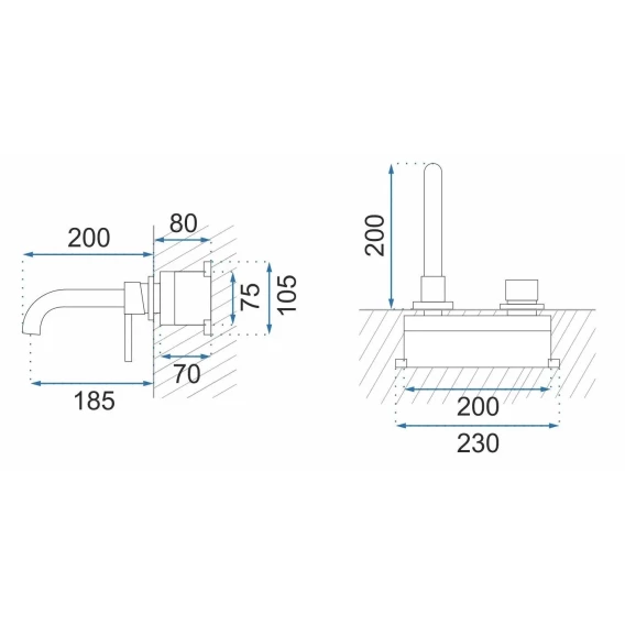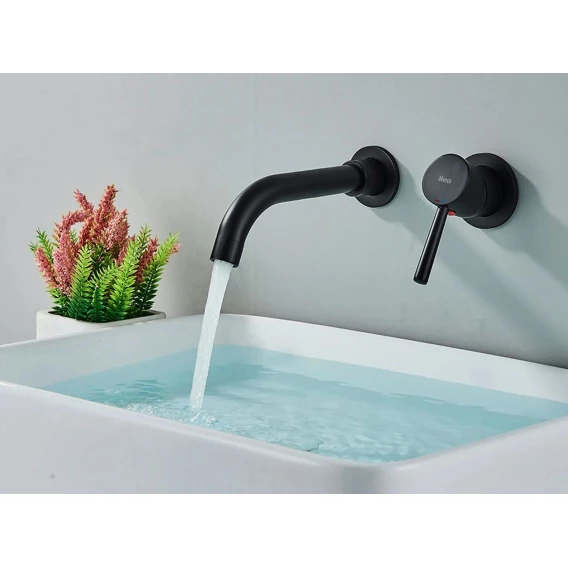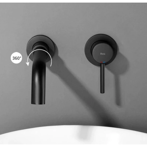 Смеситель для раковины Rea Lungo REA-B0371 встраиваемый, без донного клапана, черный матовый
