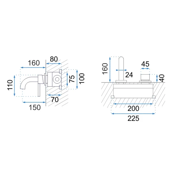 Смеситель для раковины Rea Lungo REA-B8559 встраиваемый, без донного клапана, золотой