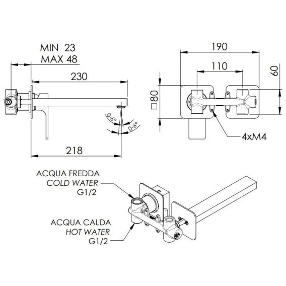 Смеситель для ванны Newform Haka 72070E.21.018 встраиваемый, хром