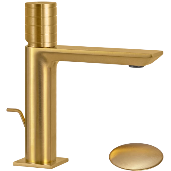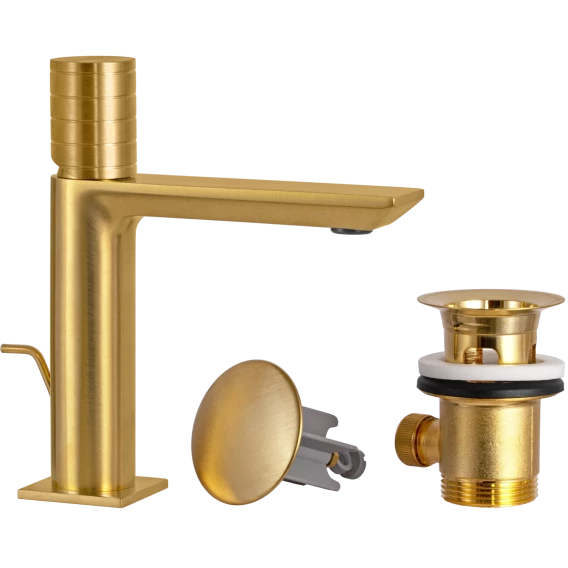 Смеситель для раковины Remer Edge EG610BG с донным клапаном, золотой матовый