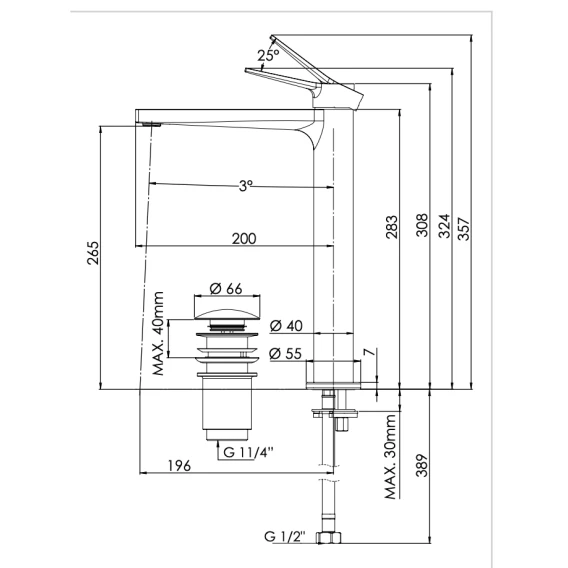 Высота излива 26.5 см