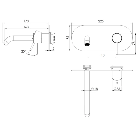 Смеситель для раковины Remer X Style X15WBCFP встраиваемый, без донного клапана, черный хром матовый