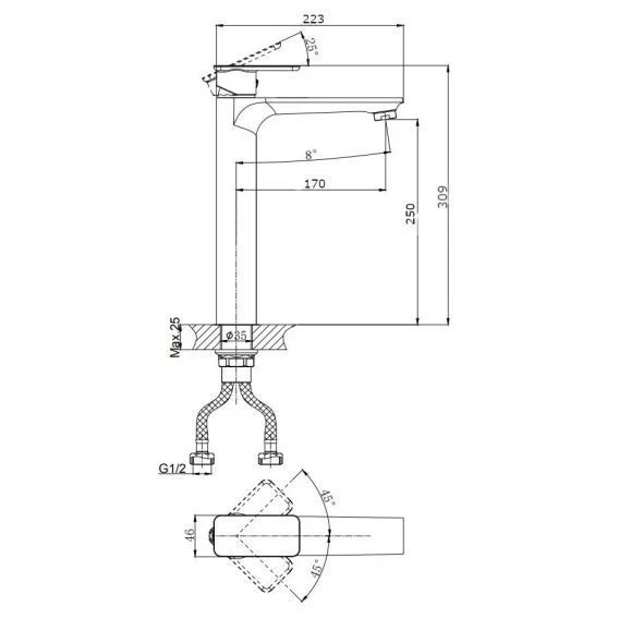 Высота излива 25 см