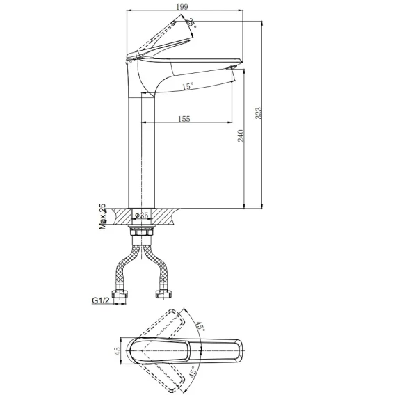 Длина излива 15.5 см